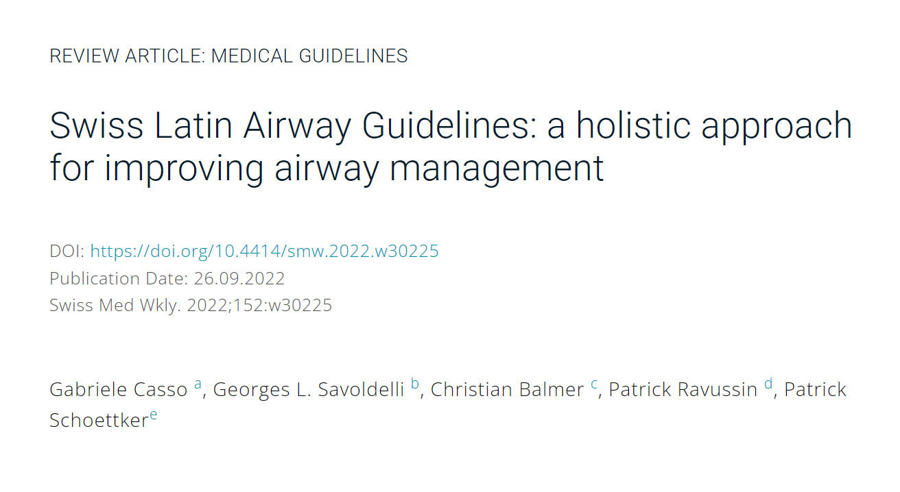 Airway management is a core competency for many different medical specialties. Despite continuous improvements in equipment, clinical understanding, education and training, airway management complications remain a significant cause of morbidity and mortality worldwide. Several international airway management guidelines already exist, but there has never been a national consensus document for Switzerland. The Fondation Latine des Voies Aériennes (FLAVA) has developed a new set of airway management guidelines based on the latest scientific evidence and the authors’ extensive clinical experience. These recommendations are intended to guide and assist clinicians in managing a wide array of airway situations. They are applicable to the daily routine management of anticipated and unanticipated airway difficulties. The new 2022 FLAVA Airway Guidelines (FLAGs) combine cognitive aids for using the latest technical skills and non-technical skills. Specially-designed key mnemonics and ergonomic tools complement these guidelines, including a colour-coded airway cart.